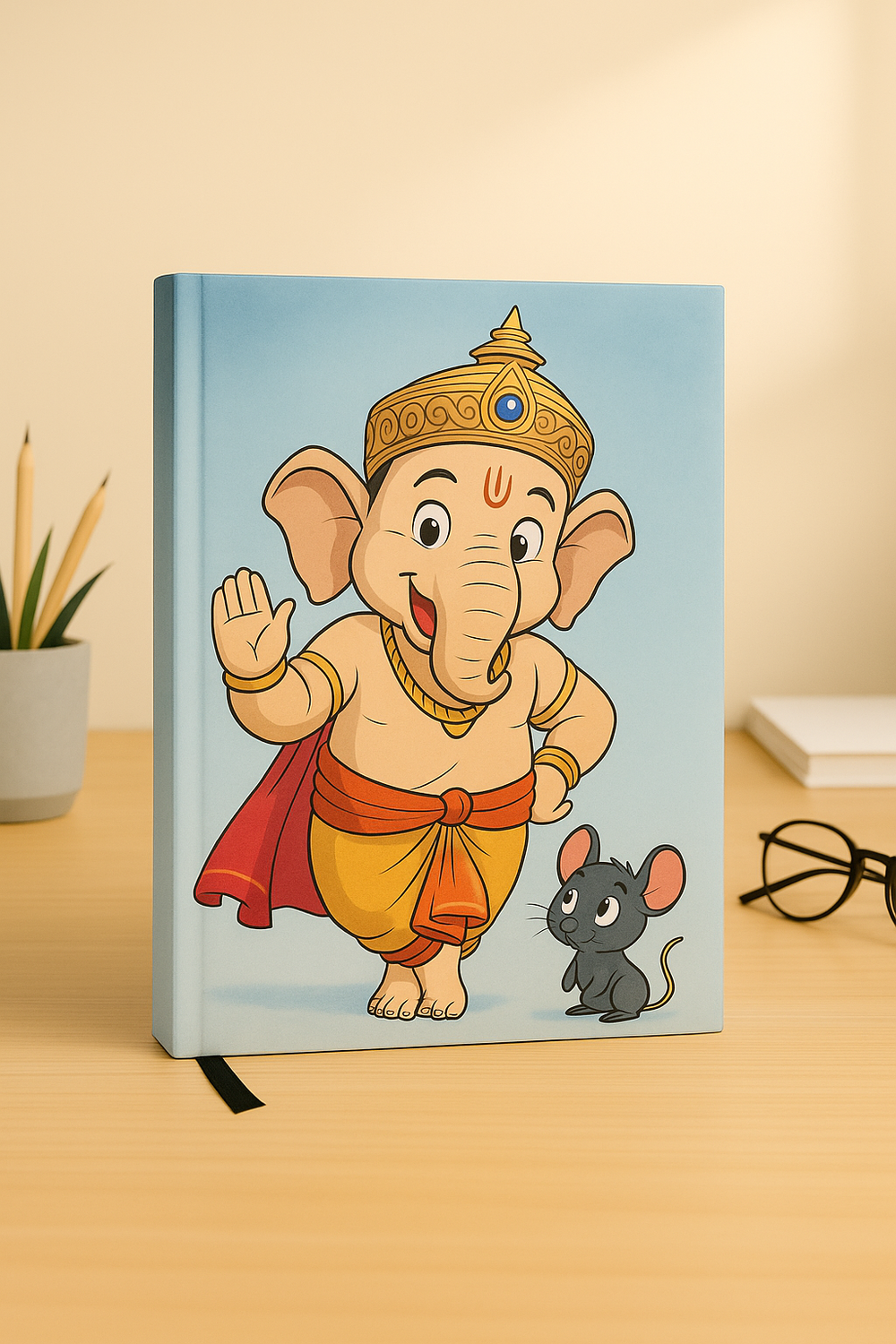 Add a touch of devotion and cuteness to your stationery with this Cute Ganesha Notebook, featuring Lord Ganesha and his loyal companion Mushakraj (mouse). Available in Hardcover and Softcover editions, it is crafted with premium-quality paper for smooth writing, journaling, and gifting.