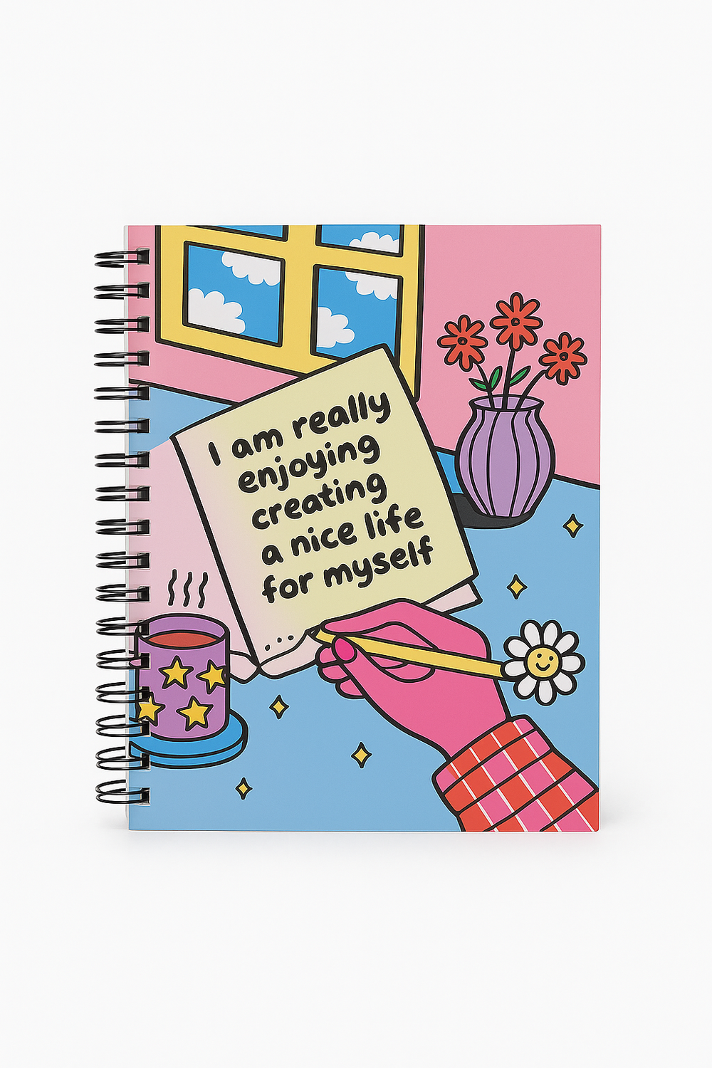 Embrace mindful living and creative joy with the Nice Little Life – A5 Spiral Notebook. With a heartwarming message and an aesthetic soft cover, this notebook is a perfect blend of inspiration and function for students, professionals, and artists alike.