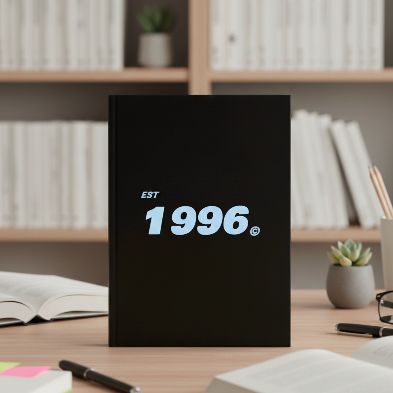 This black minimalist notebook with a vintage year print speaks volumes without saying too much — just like you do.