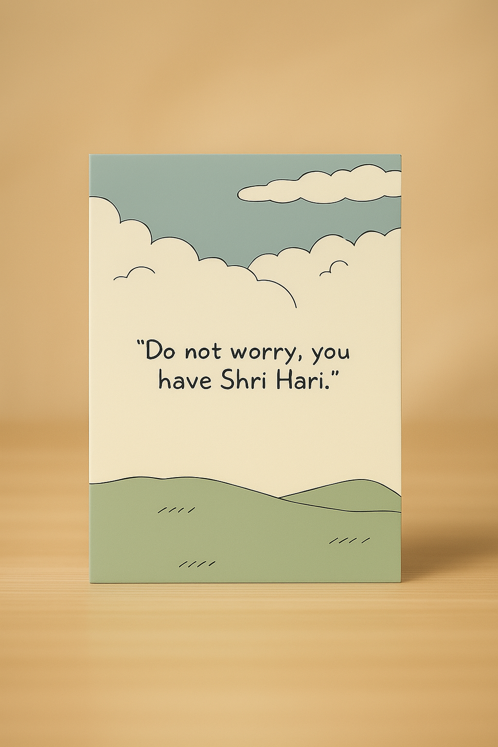 Bring peace and positivity into your daily routine with our “Do Not Worry, You Have Shri Hari” notebook. Featuring a serene minimalist illustration of clouds and hills paired with an uplifting spiritual quote, this notebook is a reminder of faith and trust in the divine.