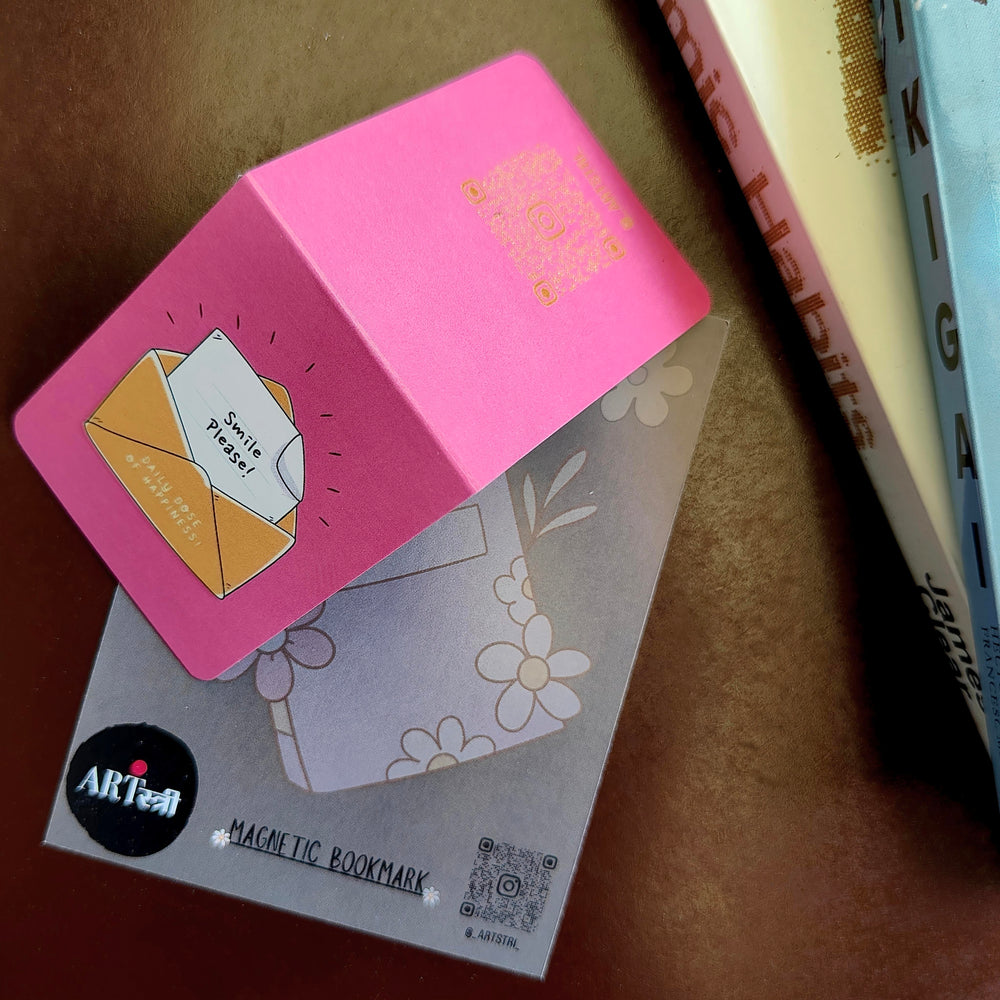 This little pink pop of joy is here to remind you (and your books) to keep smiling! Featuring an adorable envelope and the cheerful message "Smile Please!", this book magnet is perfect for planners, novels, or even gifting a dose of positivity.